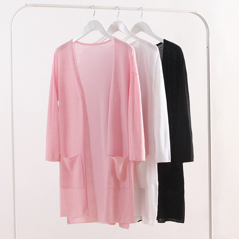 中長款針織衫開衫女薄春季寬松中袖防曬衣衫針織開衫空調衫女外套