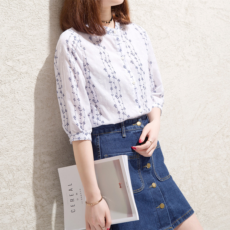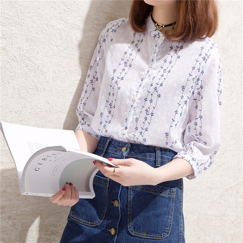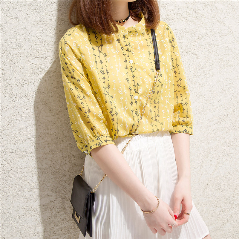 短袖襯衫女韓范寬松條紋小清新學生上衣夏裝新款女裝碎花襯衣