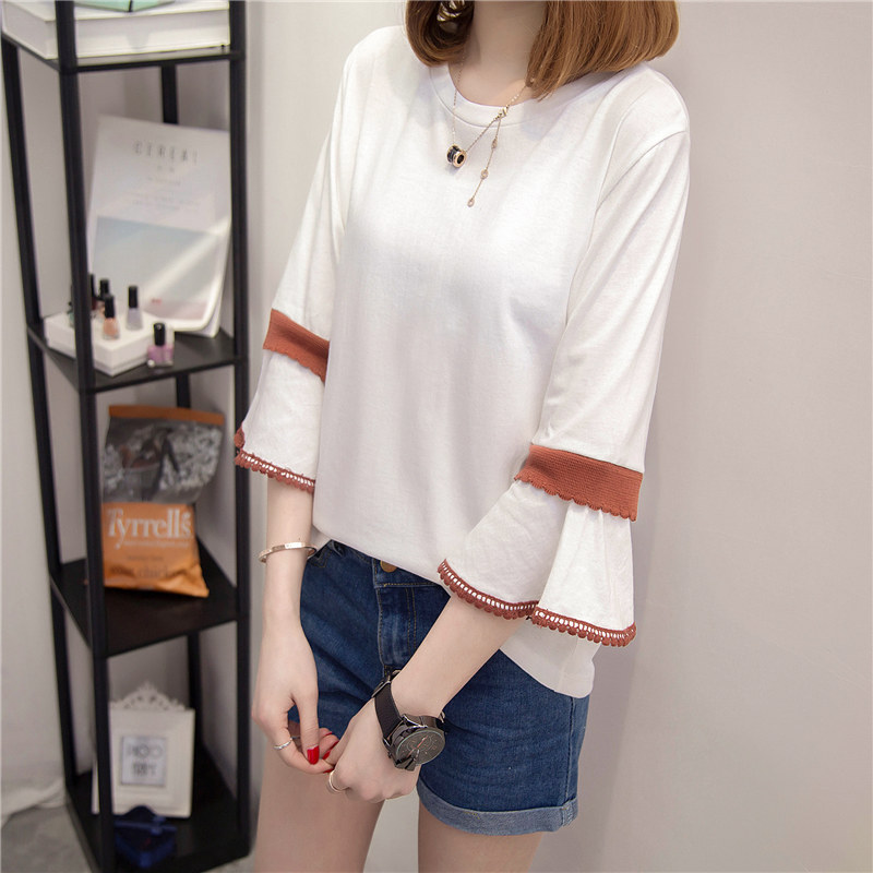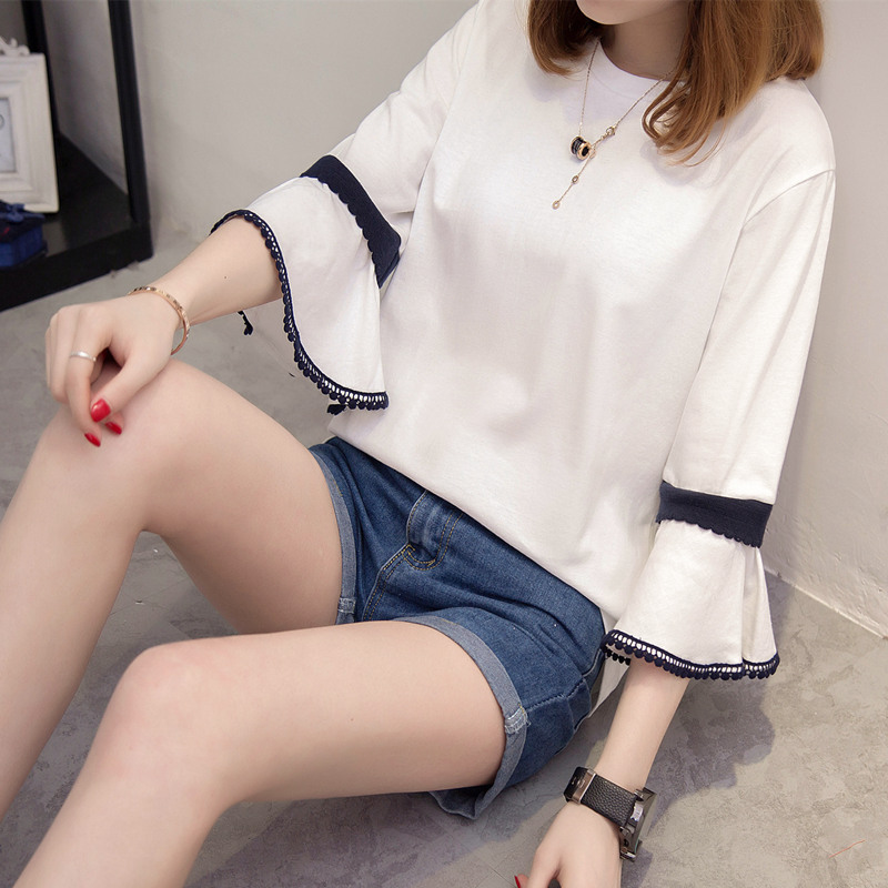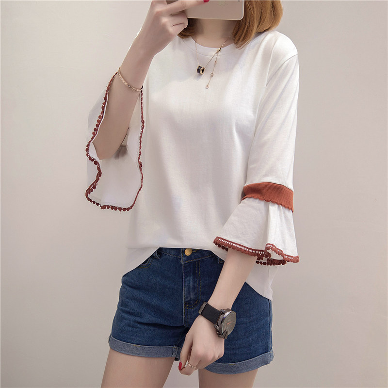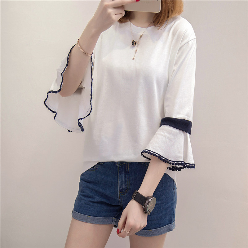 衣服女夏新款韓版短袖t恤女寬松學生百搭bf喇叭袖小清新上衣