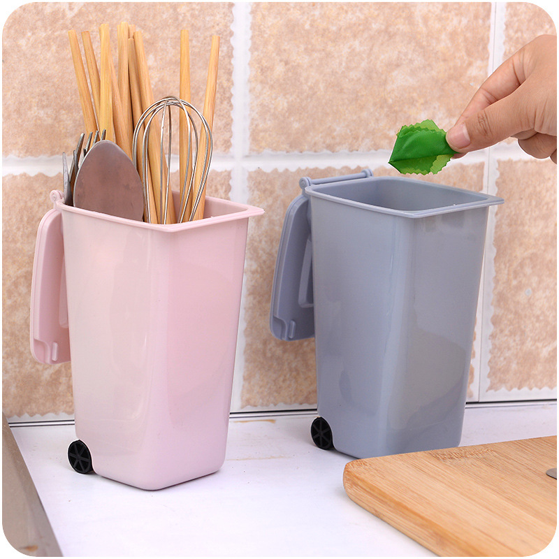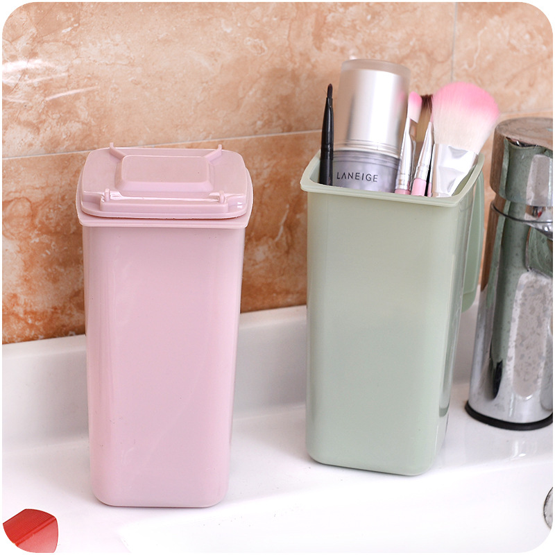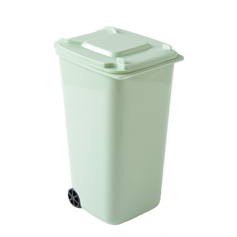滑輪清潔車造型桌面垃圾筒便攜式帶蓋文具化妝品多功能迷你收納筒