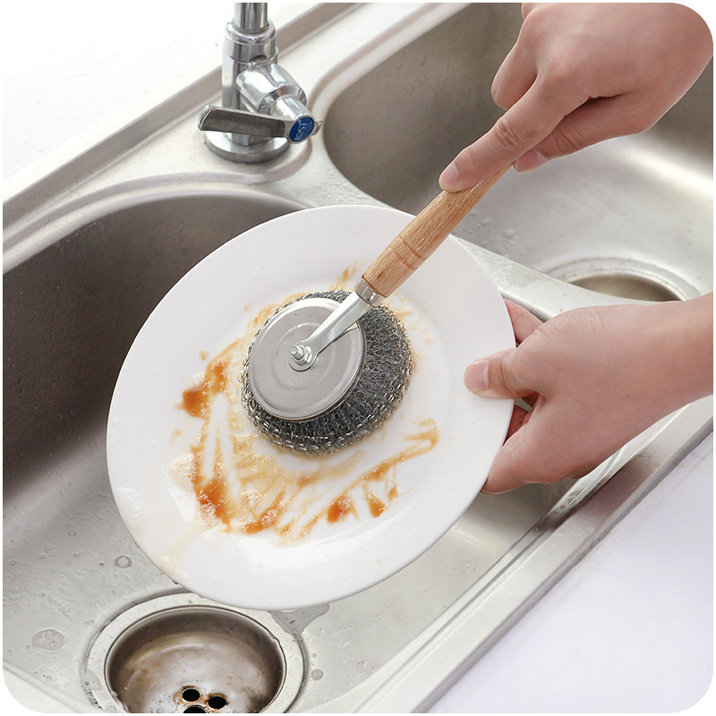 鋼絲球可拆木柄廚房鍋鋼絲長柄鍋刷不粘油清潔死角不臟手洗碗鍋刷