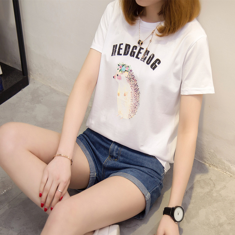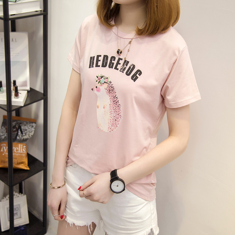 夏裝新款女裝純色韓版卡通t恤女短袖上衣女夏百搭打底衣服女