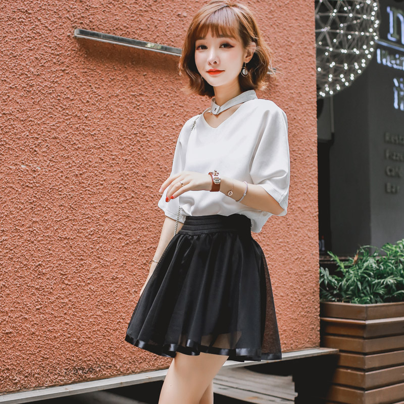 夏季新款學院風高腰網紗半身裙傘裙韓版學生蓬蓬裙女褲裙短裙