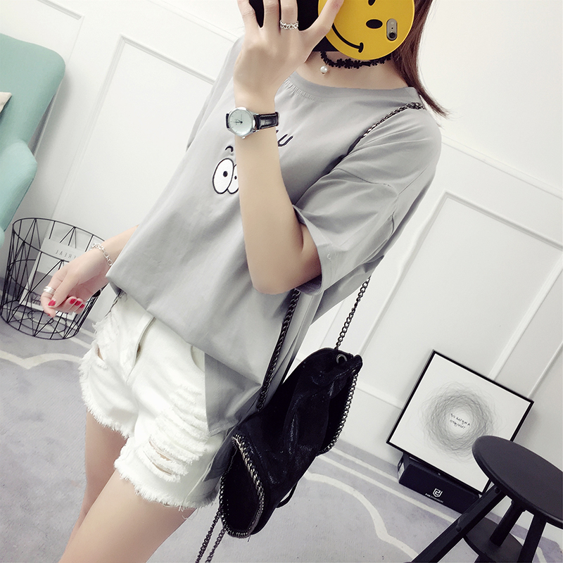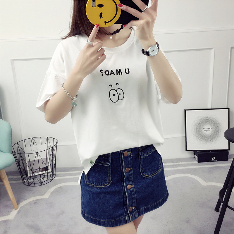 字母短袖t恤女夏季韓版百搭新款夏裝衣服寬松顯瘦學生體恤衫