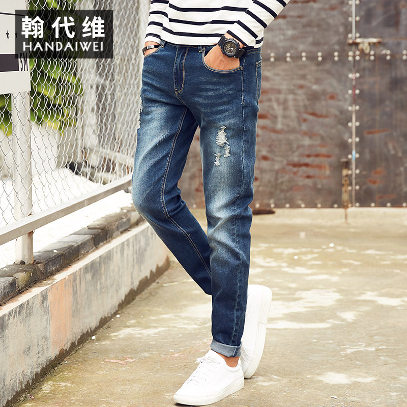 秋冬季新款修身牛仔褲男生小腳褲青少年男士秋冬款長褲潮男裝褲子