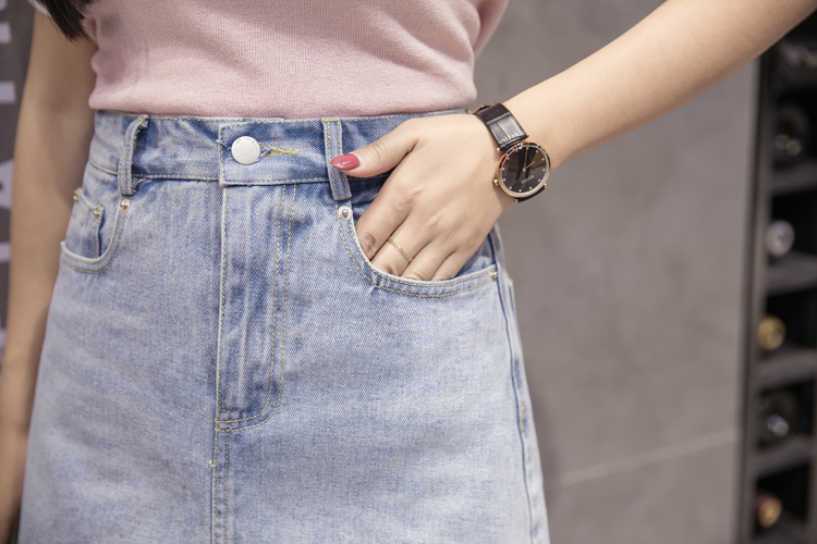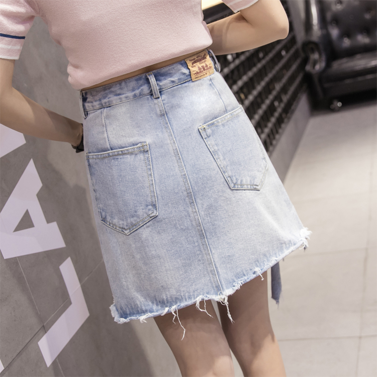 韓版高腰牛仔裙半身裙女夏季包臀短裙A字裙防走光褲裙破洞大碼裙