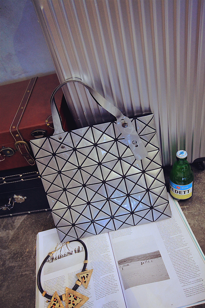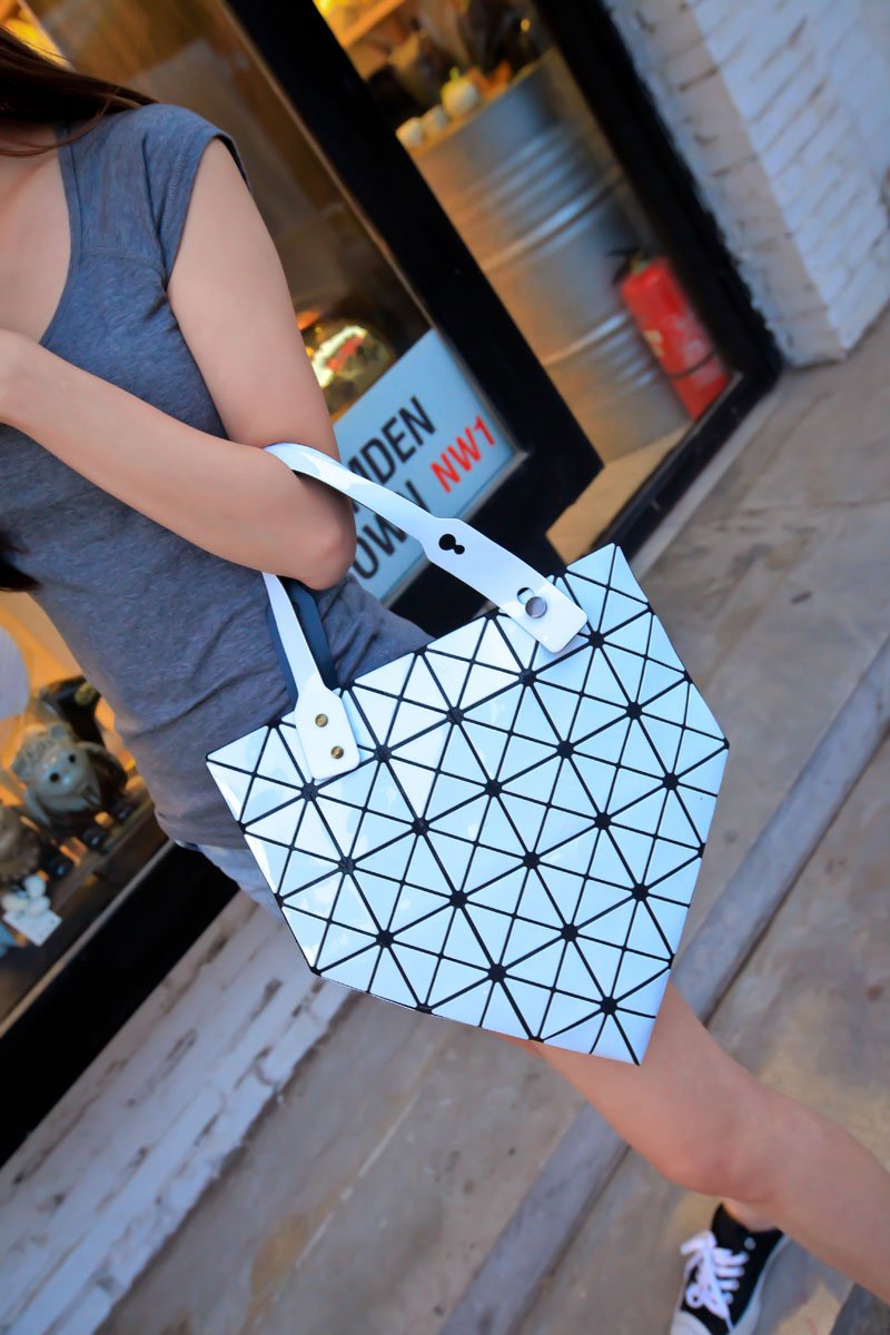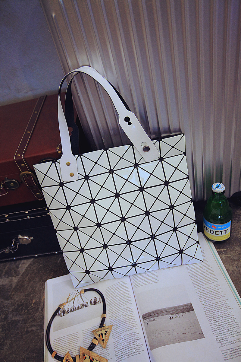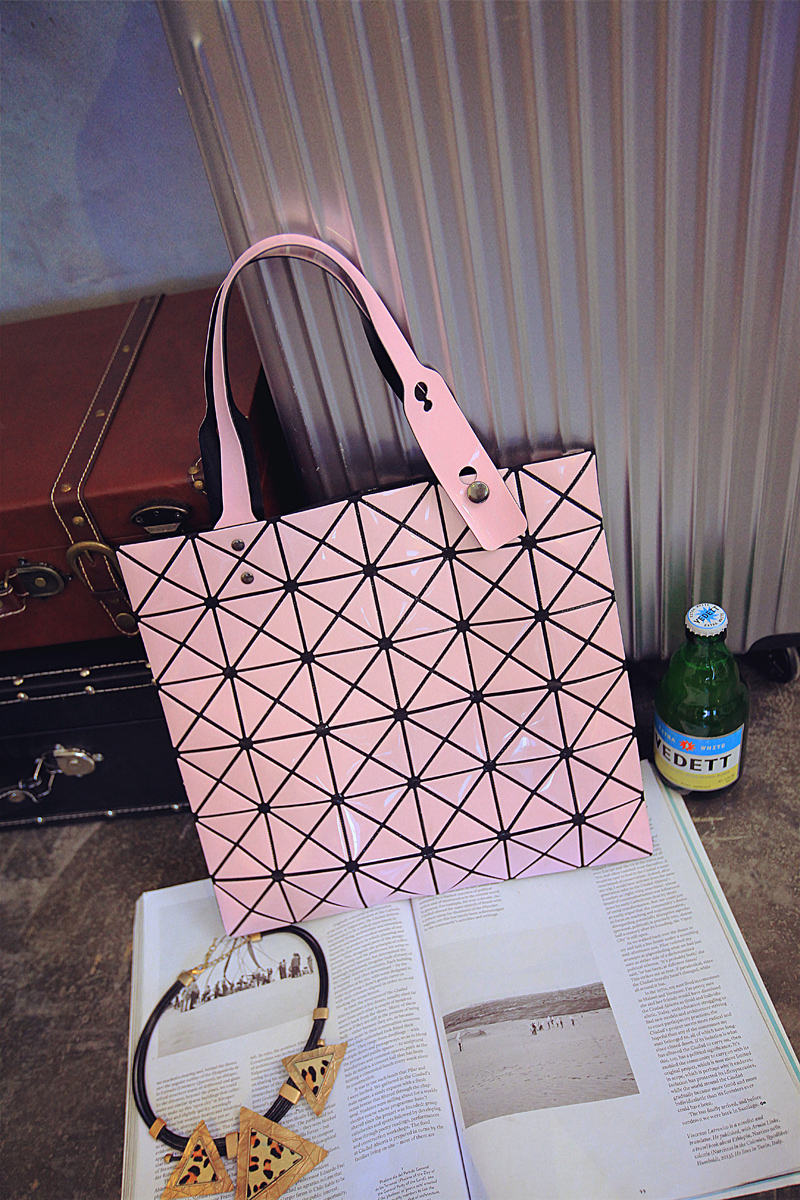 日本新款亮片幾何菱格女包手提包簡約魔方單肩包折疊百變鐳射包包