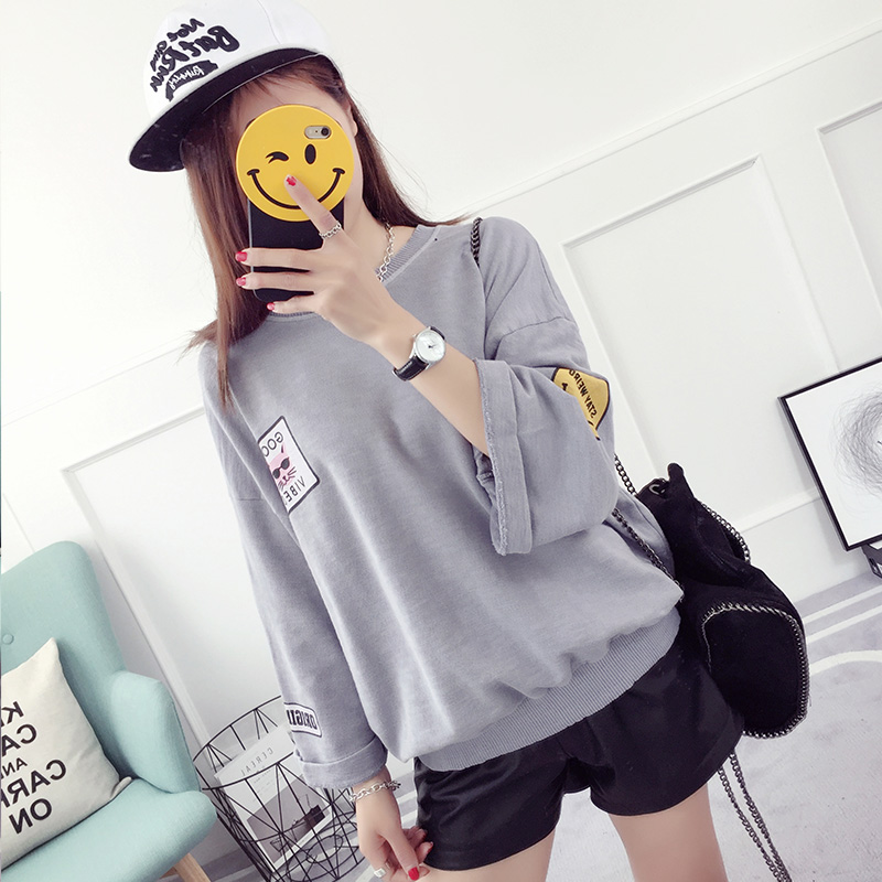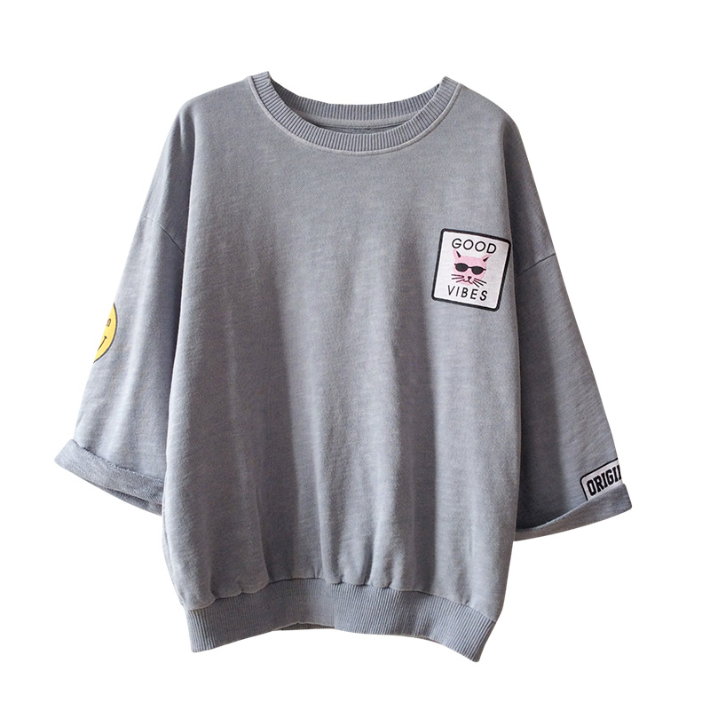 春裝新款韓版潮學生百搭寬松印花T恤女裝七分袖上衣小衫體恤