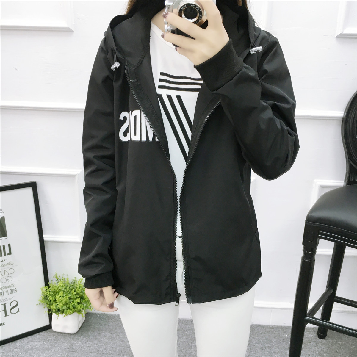 外套女春秋韓版學生寬松原宿bf字母印花百搭短款風衣夾克棒球服潮