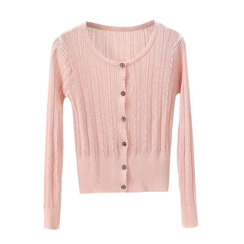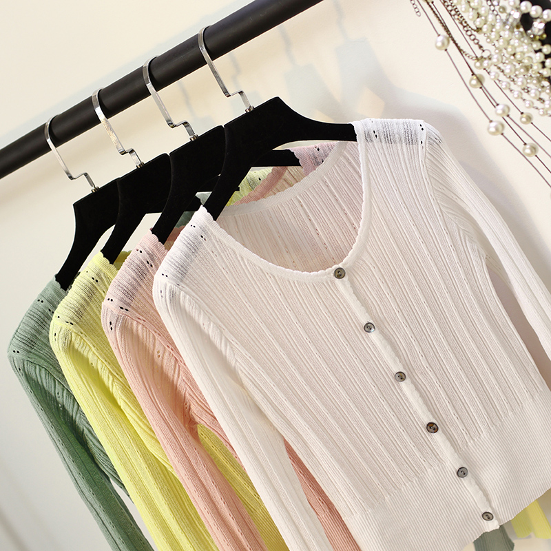 鏤空防曬開衫女夏薄短款純色針織外套女夏季薄款長袖空調衫女開衫